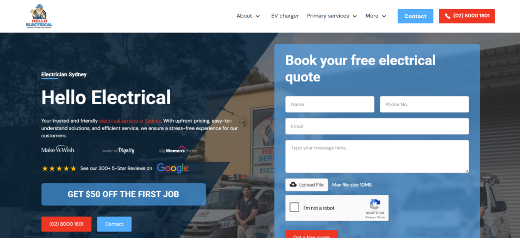 Even better, Hello Electrical helps the Make-A-Wish Foundation and other charities by offering them free quotes with no call-out fee.